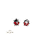 Orecchini a bottone in acciaio con coccinella smaltata rossa. Delicati e portafortuna, ideali per tutti i giorni.