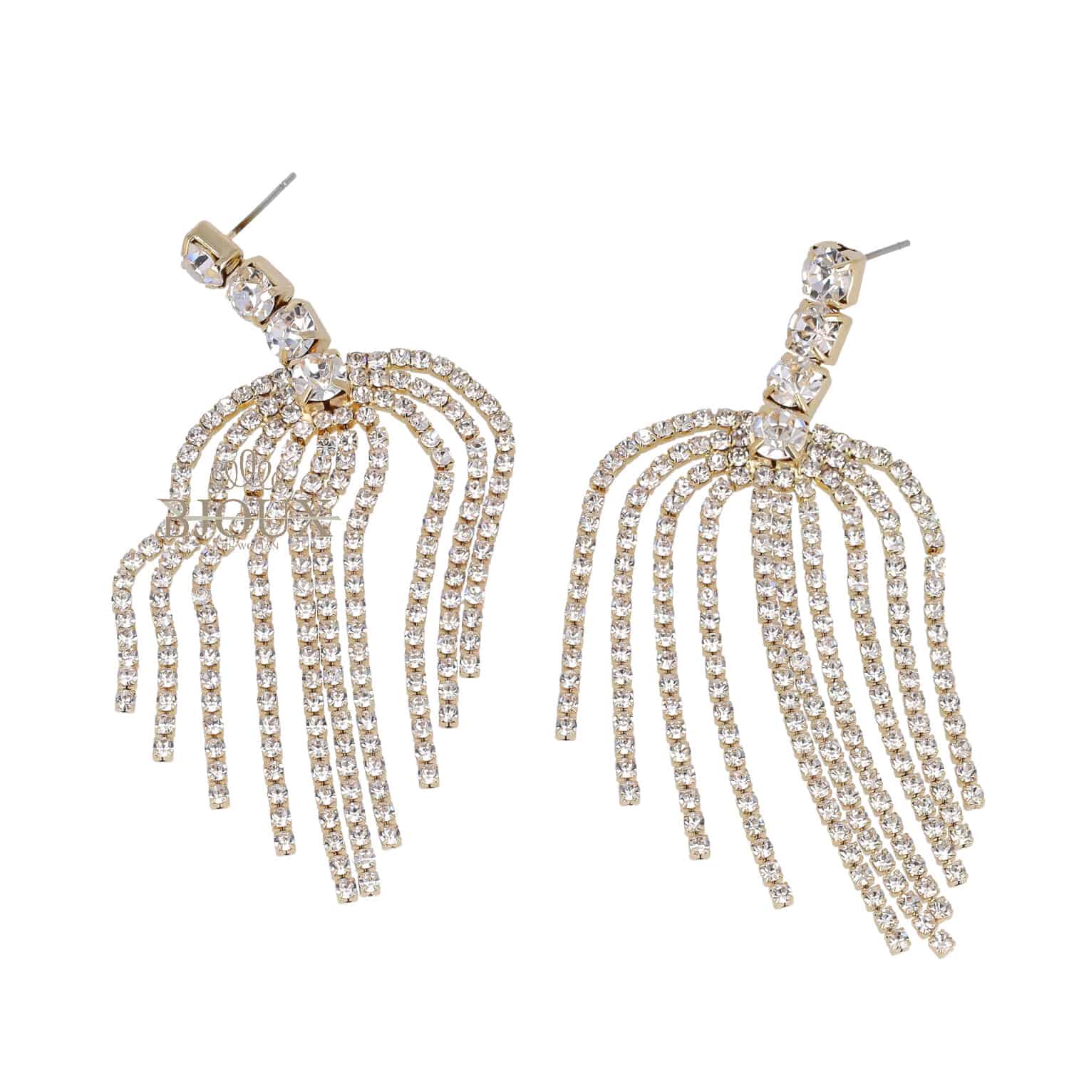 Orecchini bigiotteria con perno castoni kry e pendenti 10 fili di strass. Color oro o colore rodio. Lunghezza 8 cm