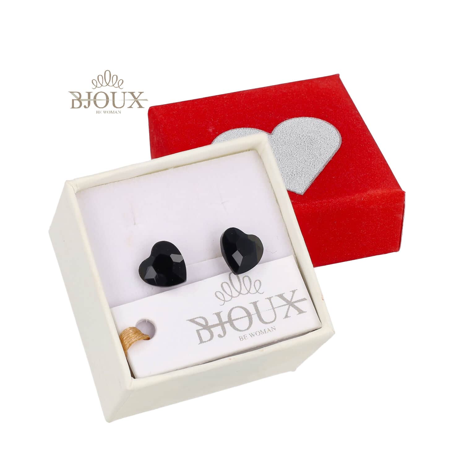 Orecchini di bigiotteria in ottone anallergico con perno e cuore in cristallo colorato 1x1cm. Astuccio 5×5 cm
