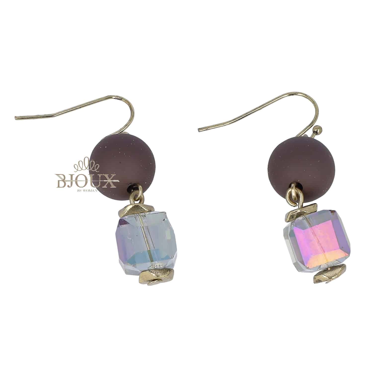 Orecchini bigiotteria con monachina, sfera gommata e cubo in cristallo .Disponibile in 3 colori