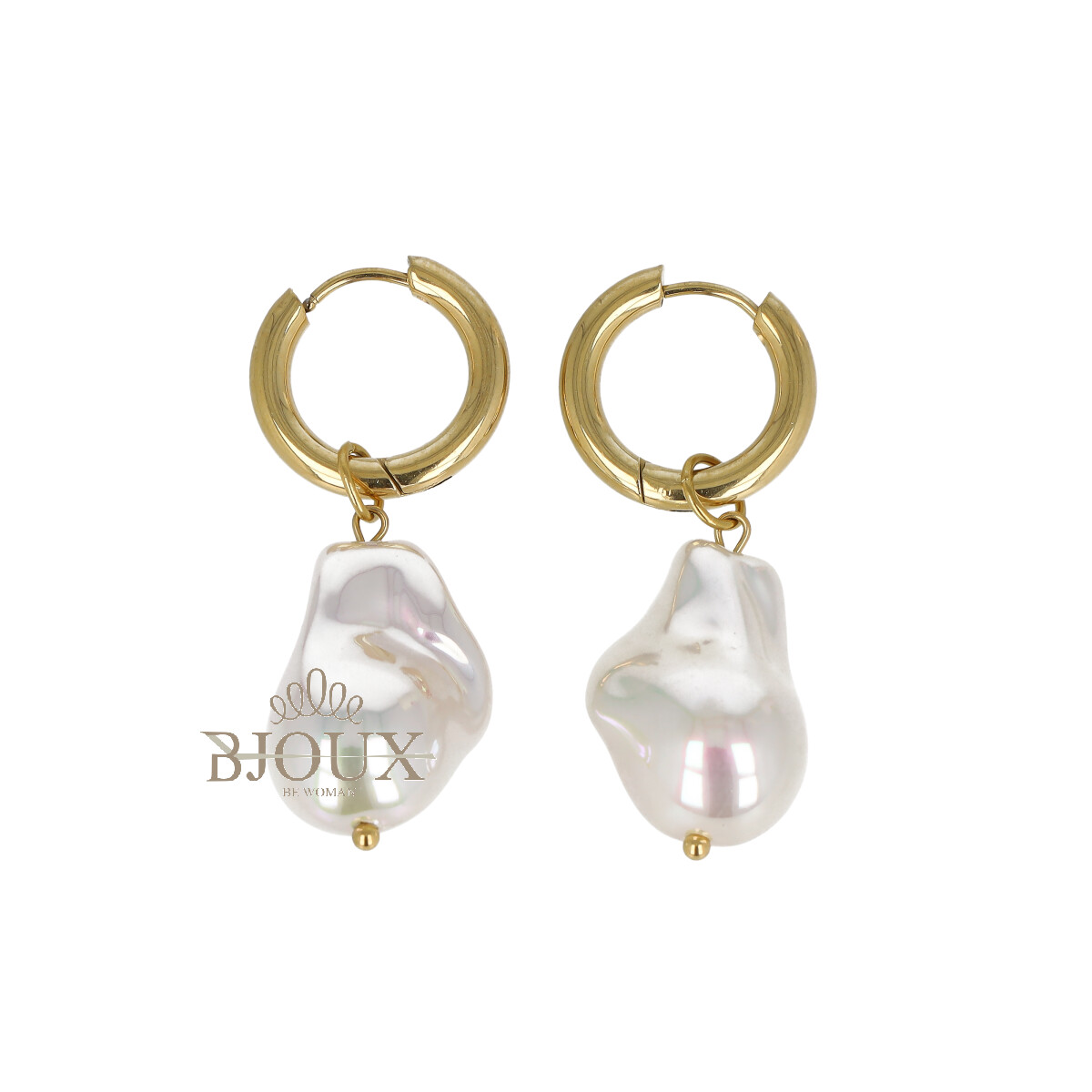 Orecchini cerchietti 15 mm in acciaio inossidabile. Gli Aurora Baroque presentano perle barocche XL, dalle forme naturali e dai riflessi intensi simili a gocce