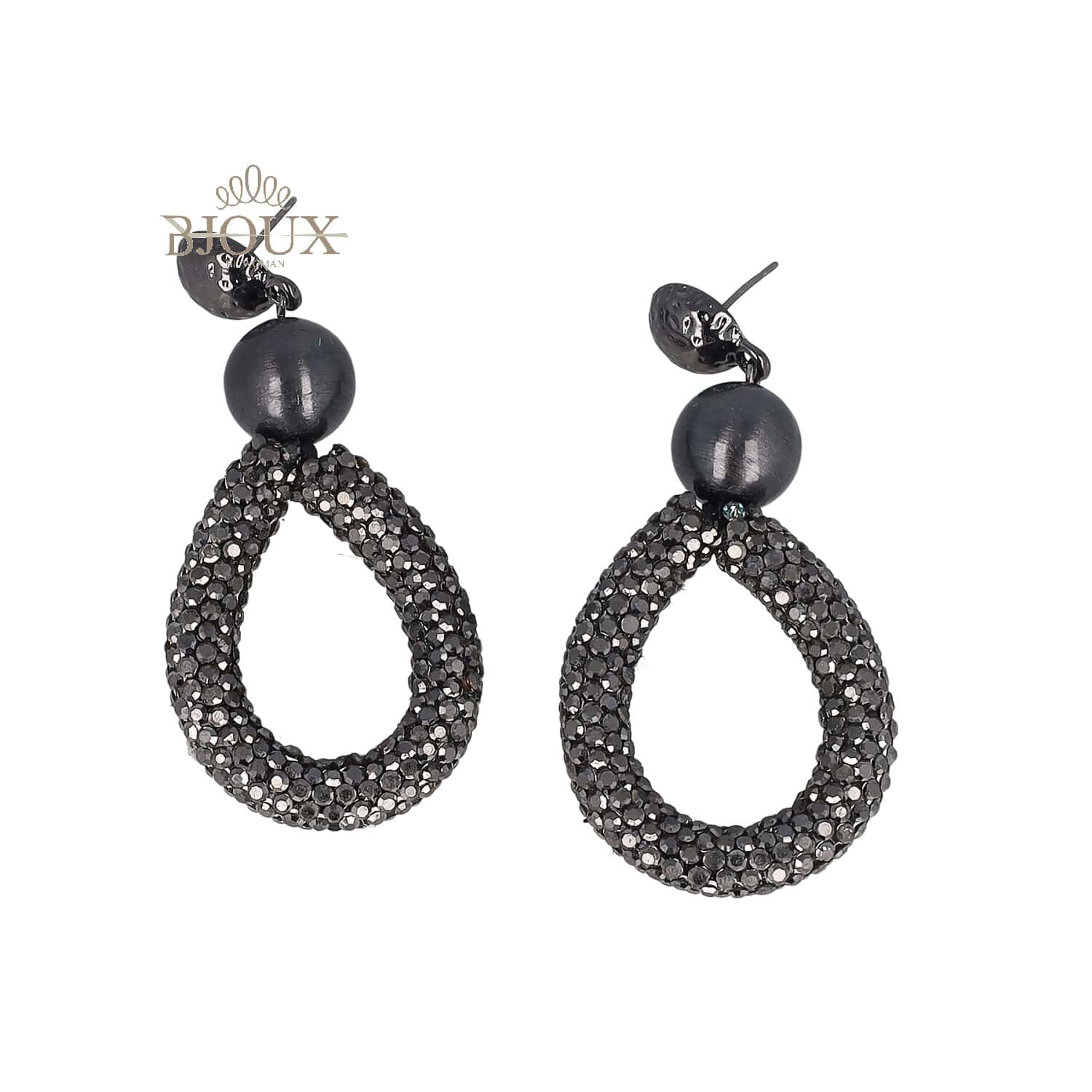 Orecchini di bigiotteria in ottone anallergico. Pendente sfera satinata e goccia rivestita da micro cristalli