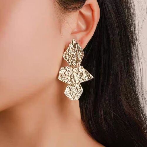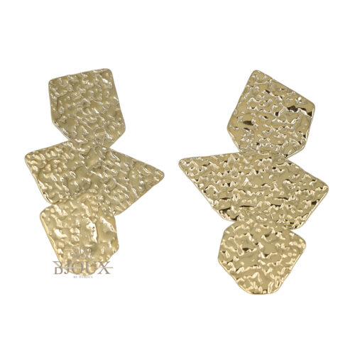 Orecchini di bigiotteria. Orecchini acciaio inossidabile con perno, forma astratta martellata, lunghezza 4,5 cm