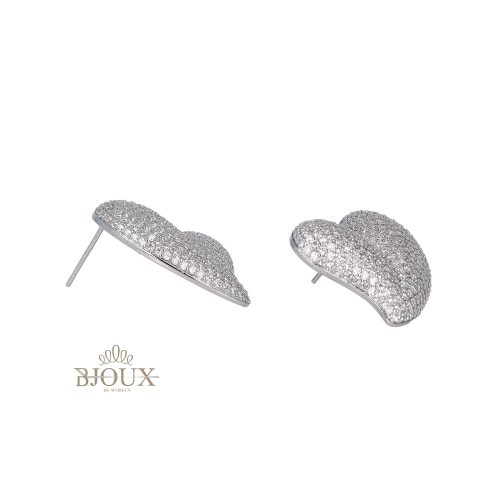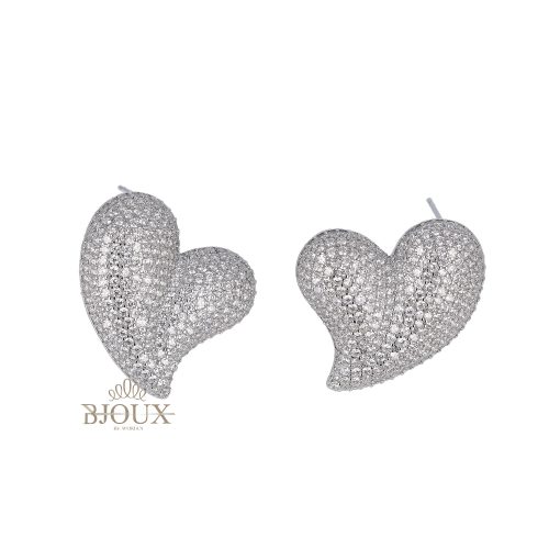 Orecchini bijoux anallergici, forma da cuore curvato da 2,5 cm con perno e applicazioni di strass. In due colori