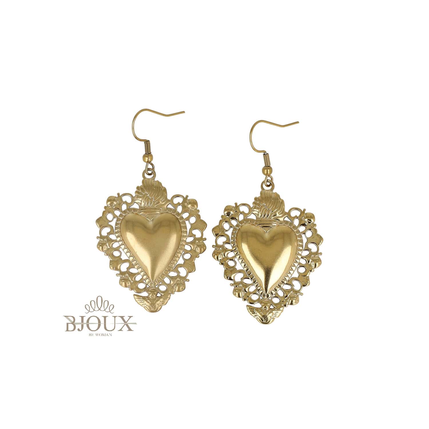 Materiale: Acciaio inossidabileย – Colori disponibili: Oro / Acciaio (rodio) – Chiusura: Amo – Lunghezza: 6 cm circa – Cuore da 4 cm