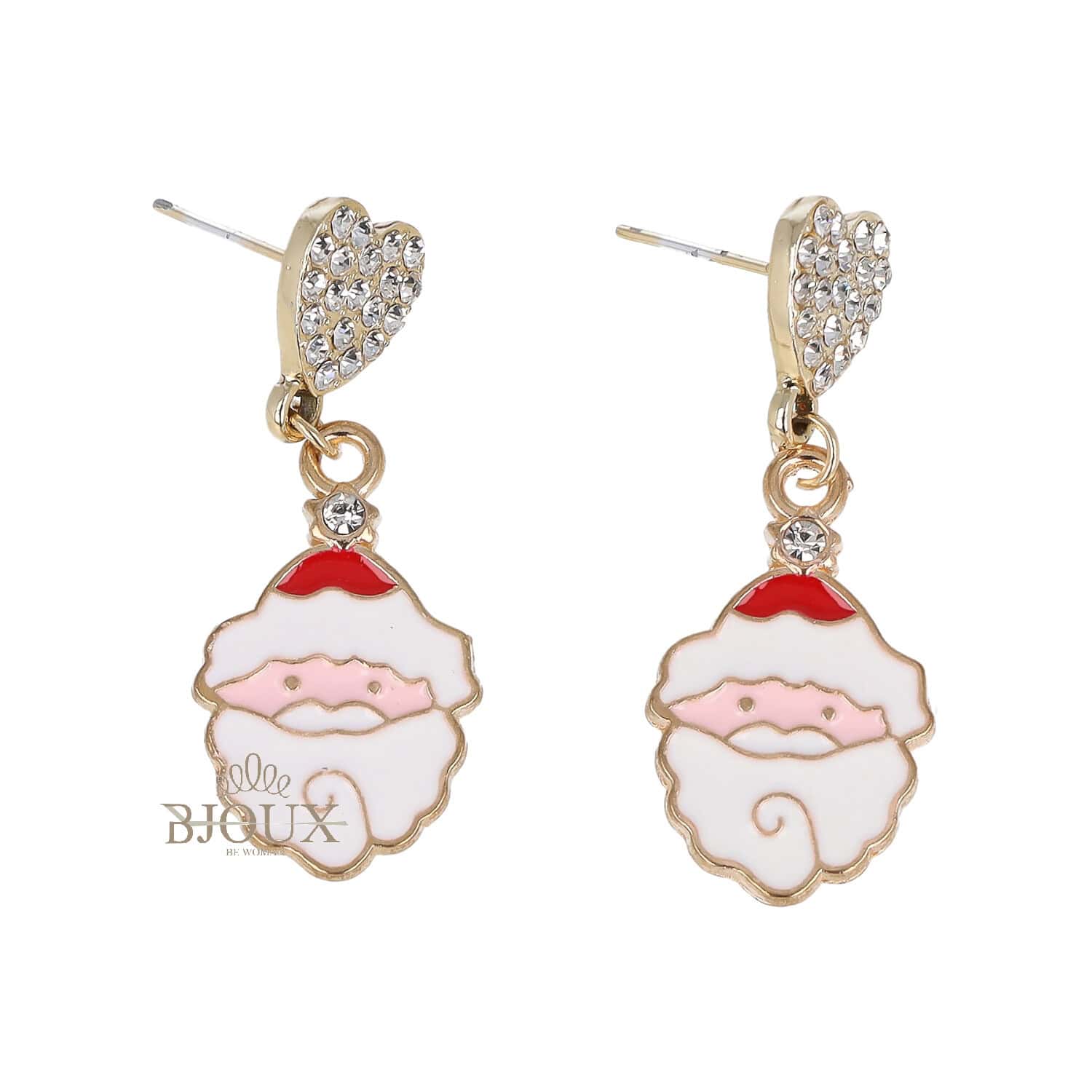 Orecchini di bigiotteria in ottone anallergico con perno decorato da strass e ciondolo natalizio smaltato