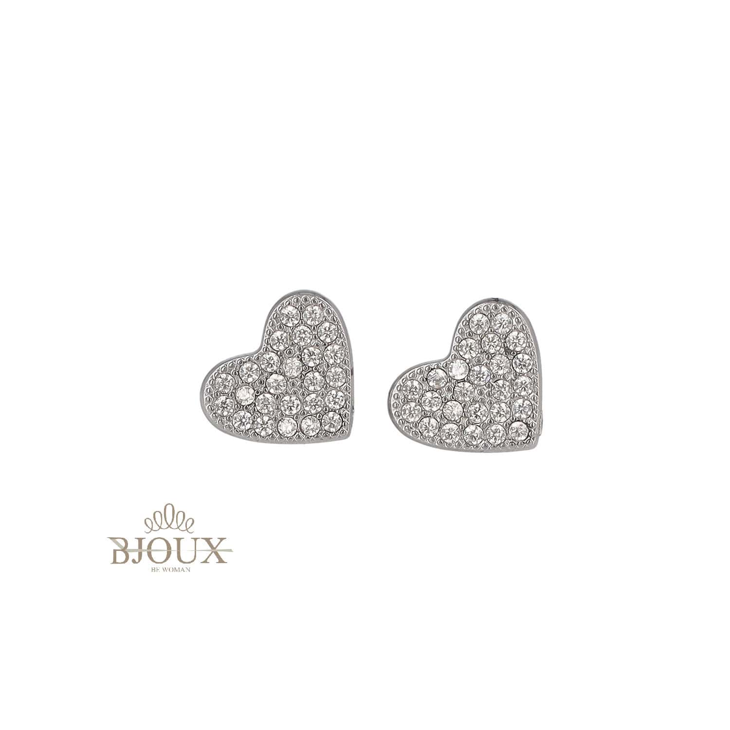 Orecchini in acciaio anallergico con perno e chiusura a farfallina. Cuoricini con strass cm 1,3