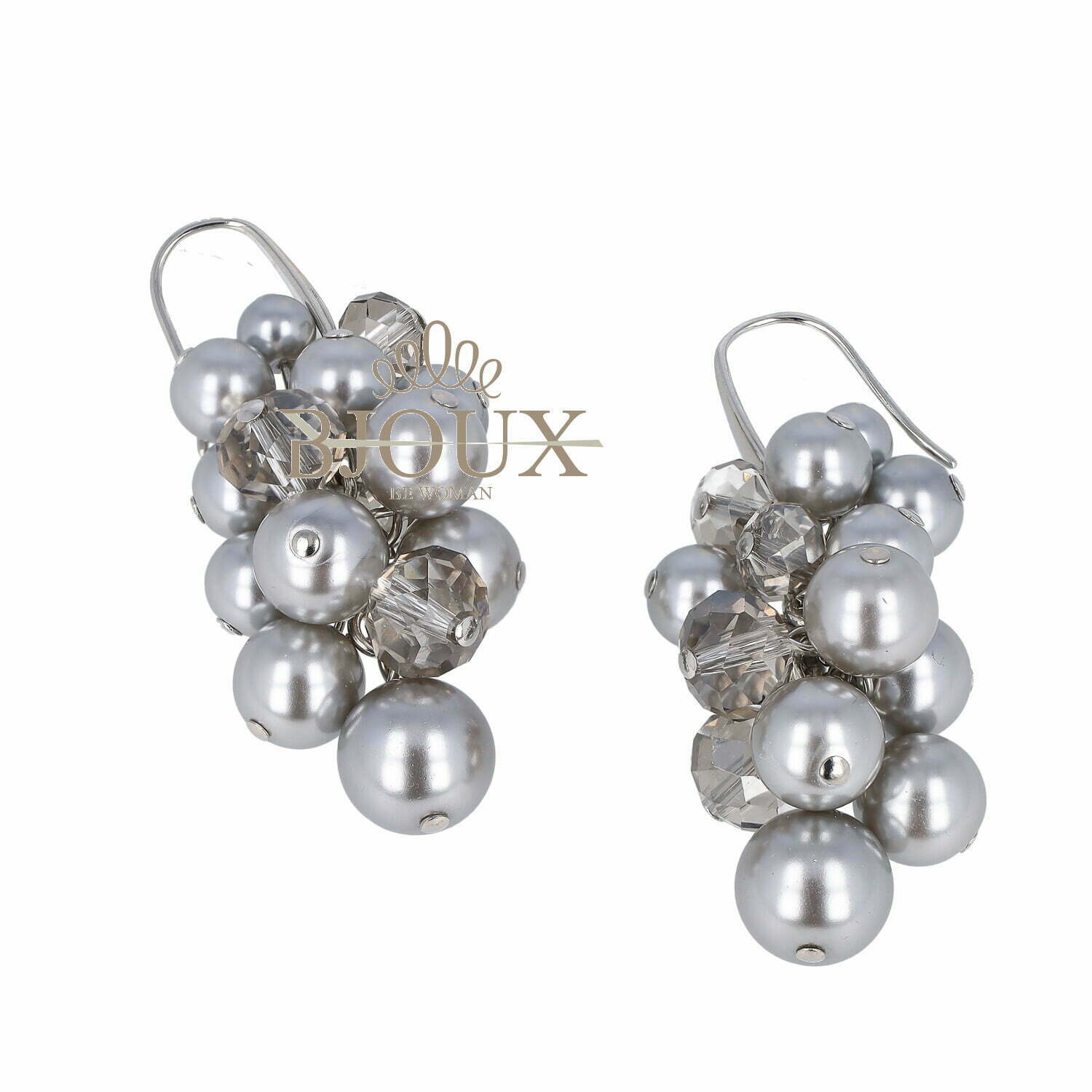 Orecchini bigiotteria da donna in materiale metallico con monachina. Pendente perle ematite a grappolo