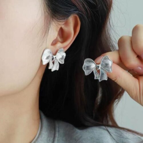 Orecchini da donna in acciaio inox con perno fiocco rigato 2,3×2 cm. Colore oro o rodio
