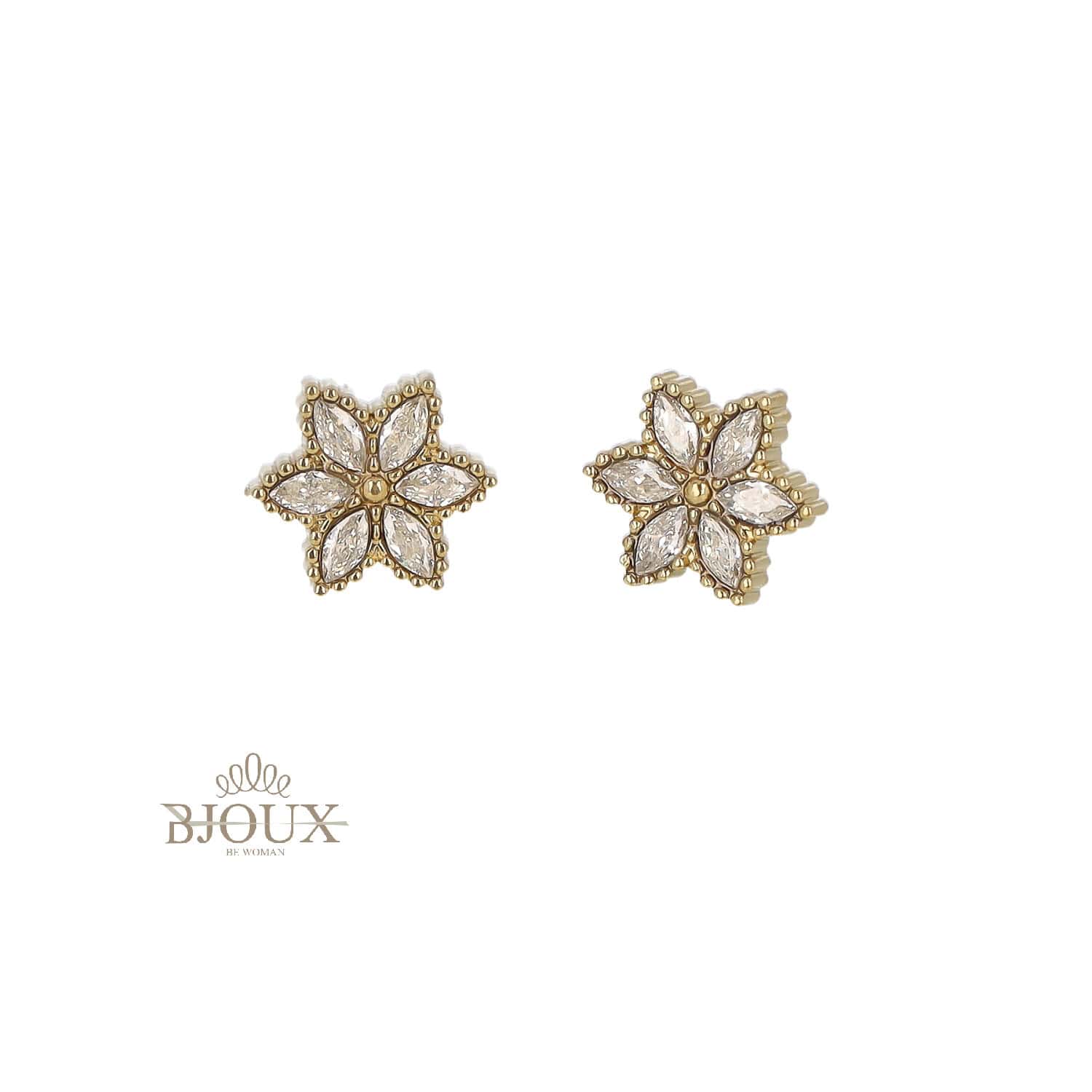 Orecchini a fiore con petali decorati da micro-cristalli luminosi. Un modello elegante e intramontabile, perfetto per aggiungere un tocco chic.