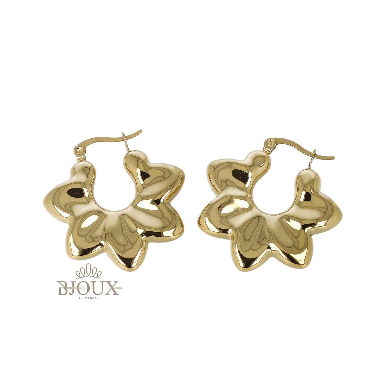 Design floreale a cerchio con petali vuoti, effetto maxi leggero e femminile.Disponibili in oro e rodio.