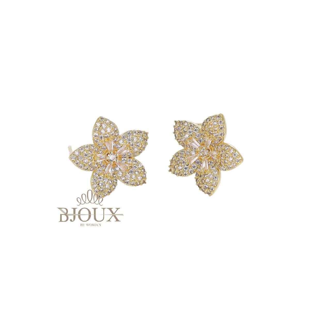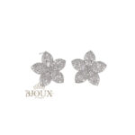Orecchini modello a fiore.ย Orecchini in ottone anallergico a lobo con perno con a forma di fiore decorato da strass con pietra centrale