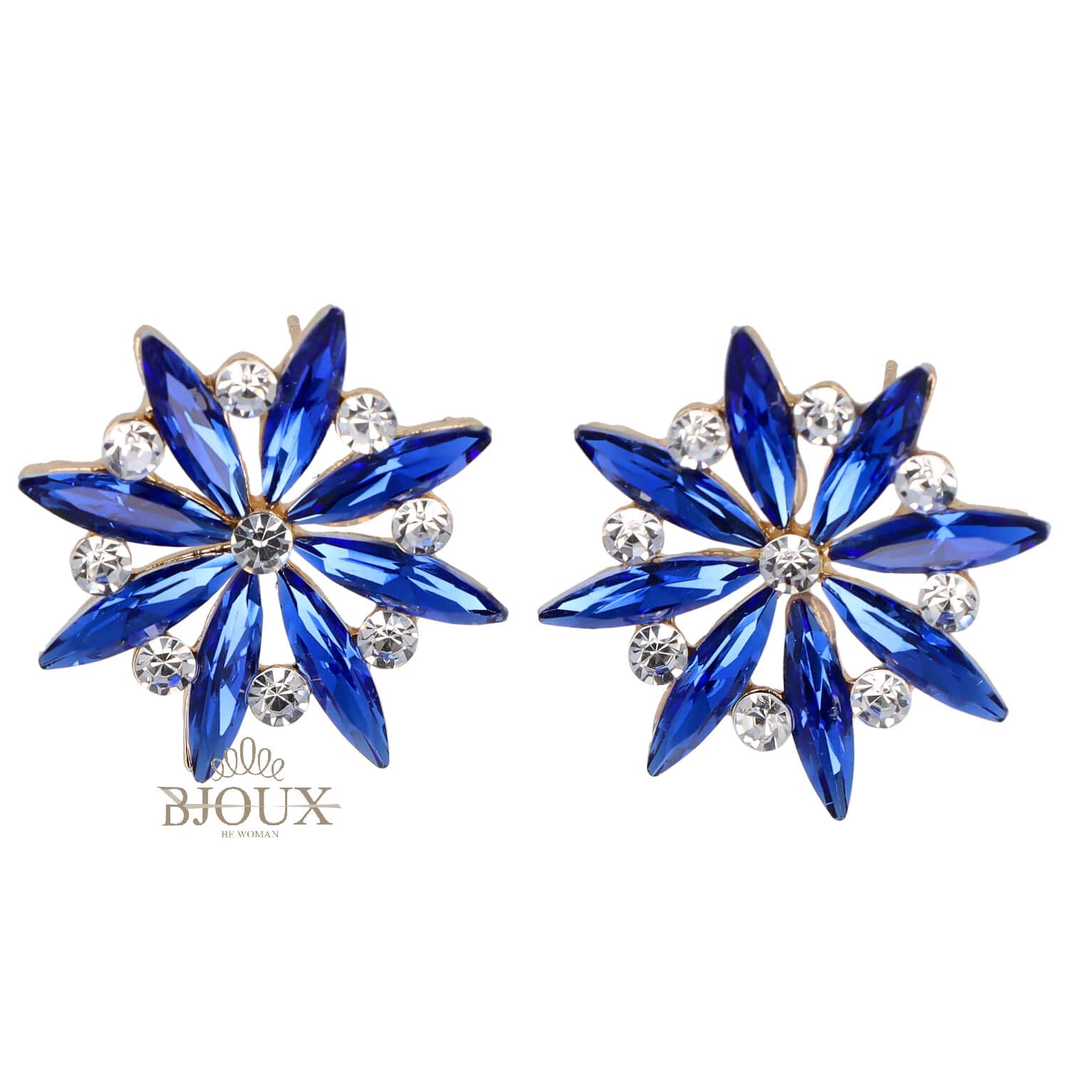 Orecchini con perno anallergico in ottone dipinto. Perno con fiore composto da cristalli in vetro colorato e punti luce. 3 cm