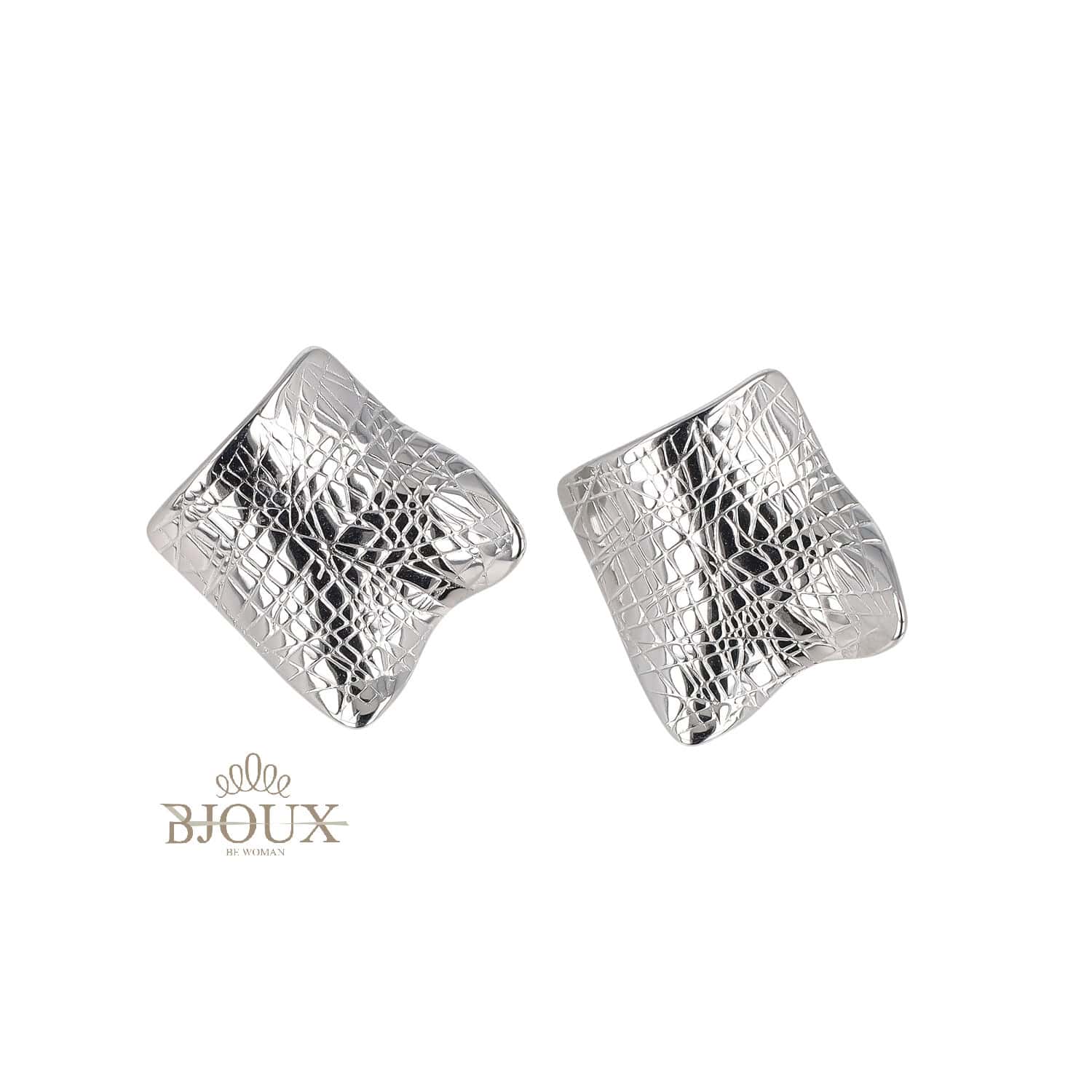 Orecchini geometrici quadrati con texture effetto pelle martellata, per uno stile deciso.Disponibili in oro e rodio.