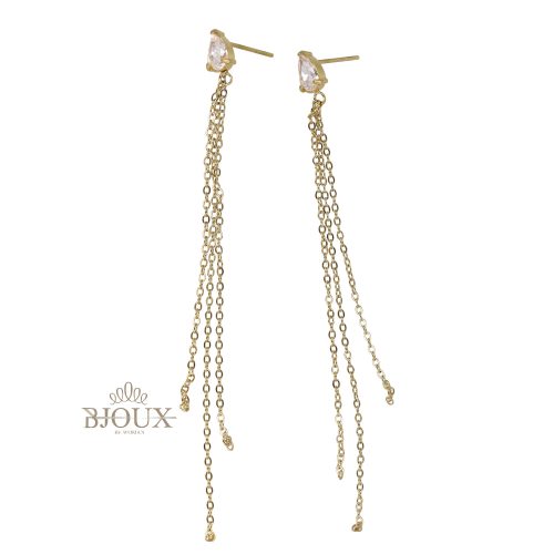 Orecchini di bigiotteria donna in acciaio inossidabile anallergico con perno e chiusura a farfallina composti da un castone a goccia da 0.5 cm con catenelle a gradazione. Lungh. max 9 cm