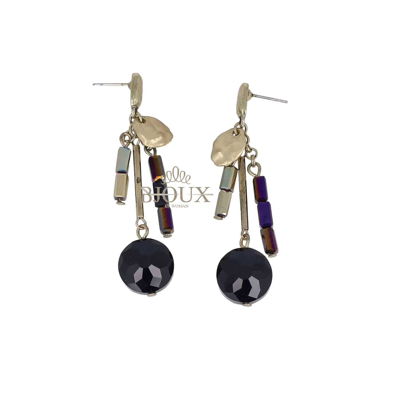 Orecchini a pendente con perno in ottone anticato anallergico con cristalli in vetro e pietra colorata.