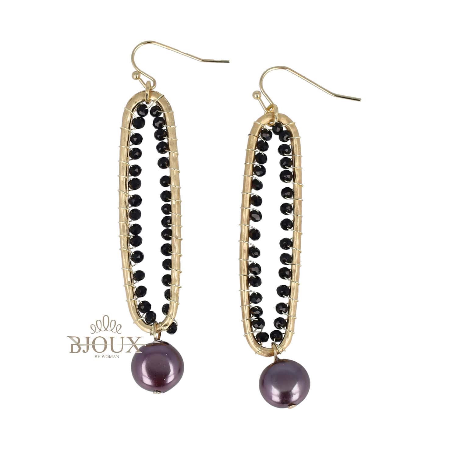 Orecchini bigiotteria da donna con perno, pendente con perla in vetro black.ย Anallergici e senza nickel