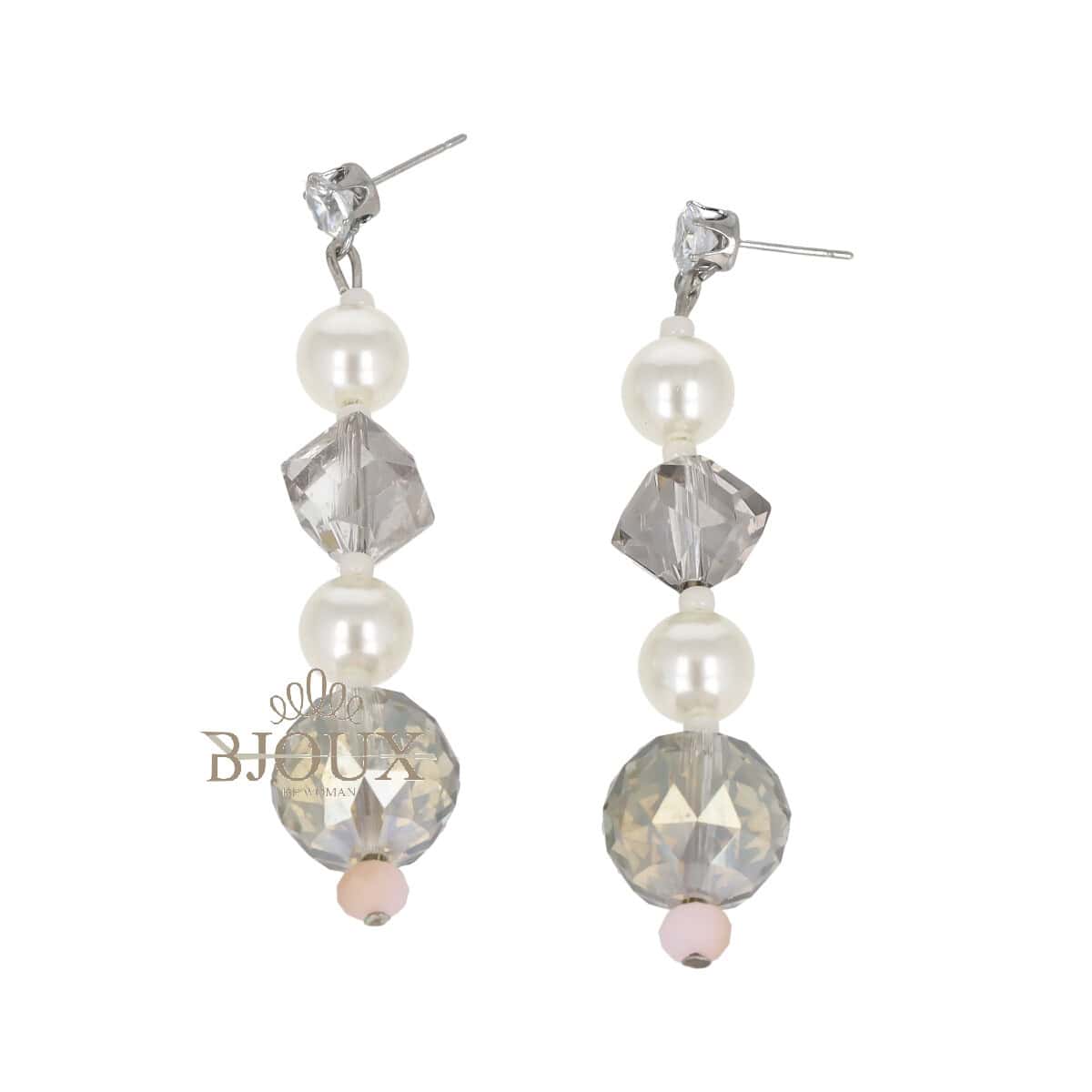 Orecchini handmade bijoux composti da perle e cristalli in vetro. Perno in ottone con farfallina e punto luce, semplici ed eleganti. Lunghezza 7 cm