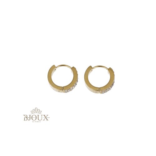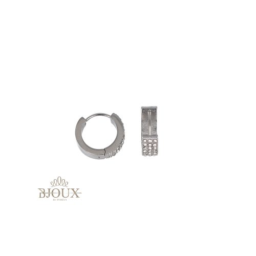 Orecchiniย mini hoops in acciaio inossidabile anallergico da 10 mm diametro 0,5 spessore con decoro di strass laterali. In due colori.