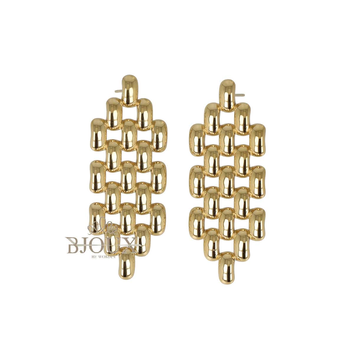 Orecchini in acciaio inossidabile a lobo con perno e chiusura a farfallina. Forma romboidale lucidi, lunghezza 5 cm