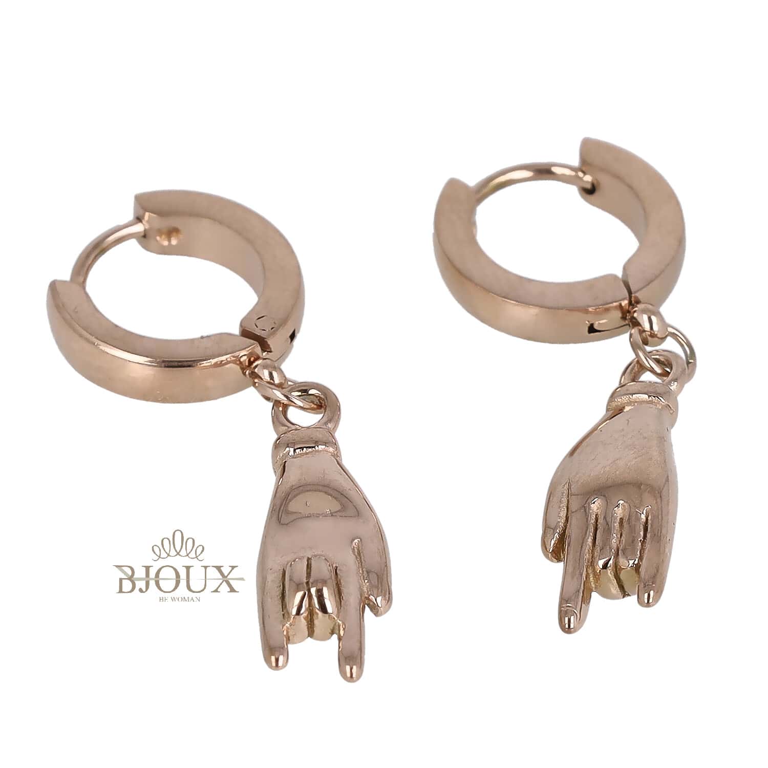 Orecchini in acciaio inossidabile. Orecchini a cerchio piccolo con charms pendente portafortuna. Colore gold rose.