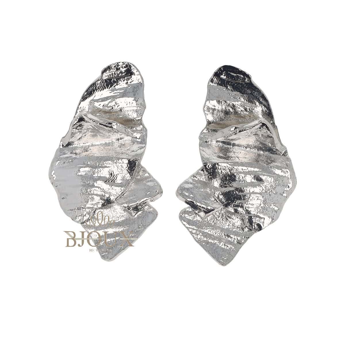 Orecchini bijoux in ottone anallergico dipinto in gold e rodio. Forma astratta con perno a farfallina. Lunghezza 5 cm
