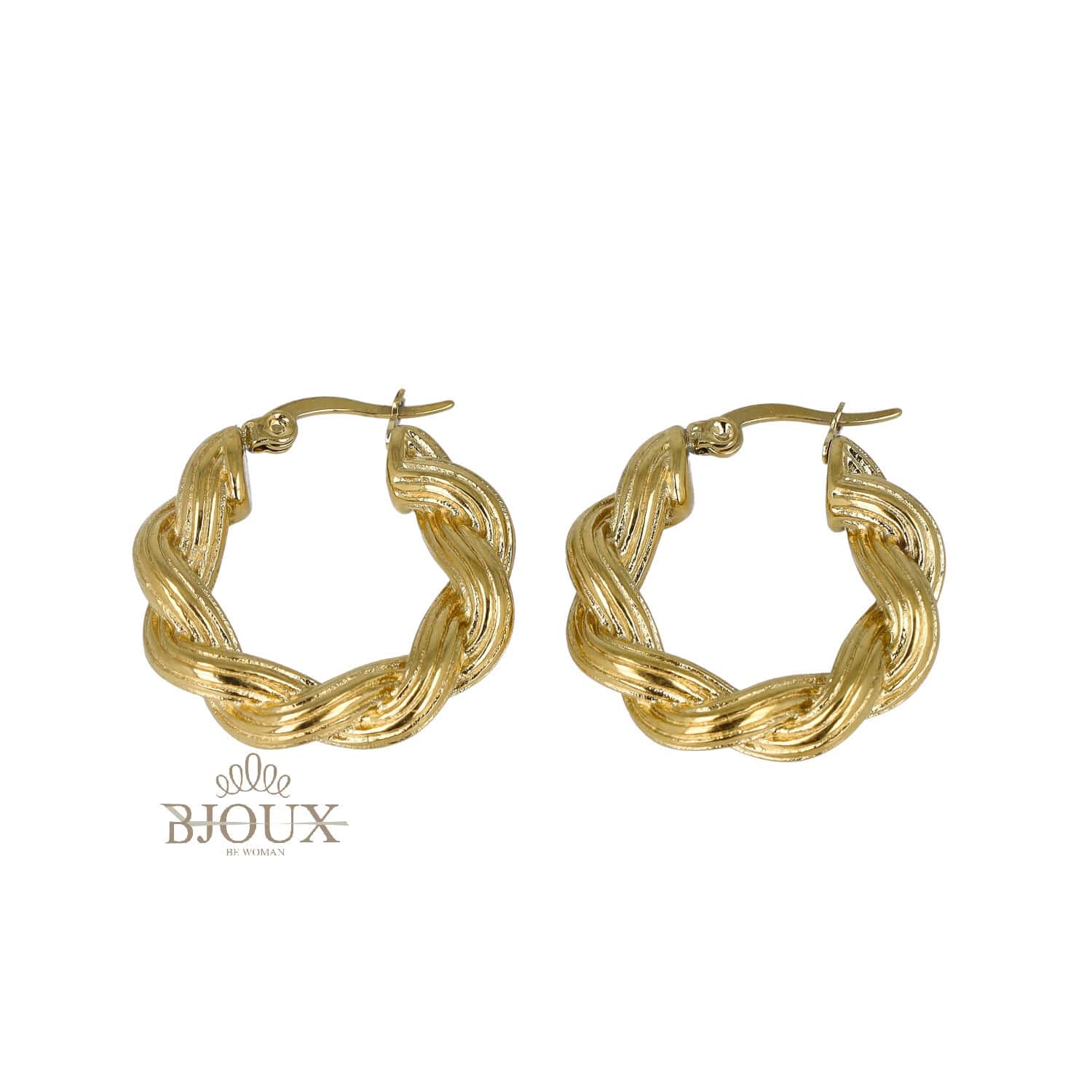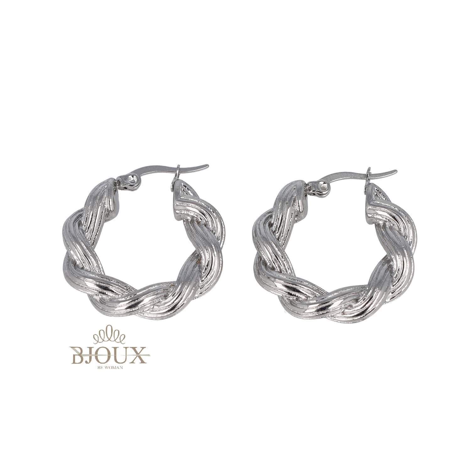 Orecchini di bigiotteria donna in acciaio inossidabile anallergico con chiusura a ponte Forma cerchio intreccio a corda 25 mm