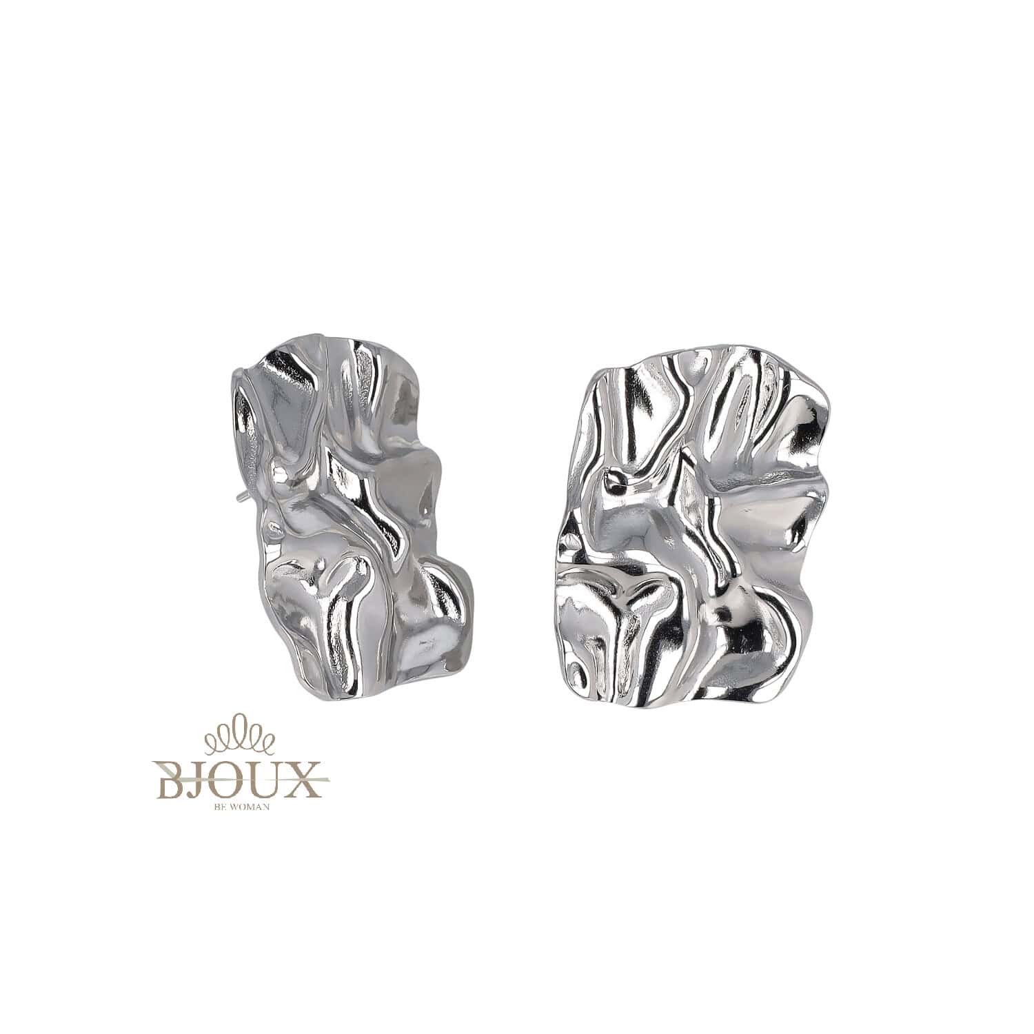 Orecchini a lobo dal design irregolare, effetto scultura martellata. Perfetti per chi ama gioielli particolari e di tendenza.
