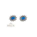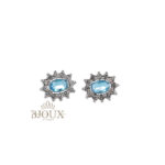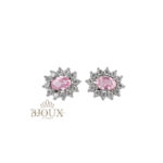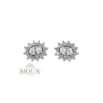 Orecchini modello Kate.ย Orecchini in acciaio inossidabile a lobo con perno con pietra centrale contornato da strass.