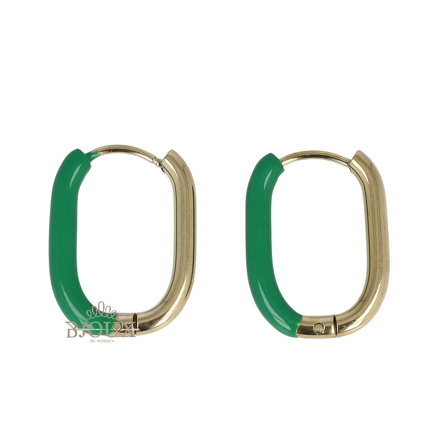 Orecchini bigiotteria in acciaio inossidabile forma ovale dorati con smalto. Lunghezza 2 cm x 1,5 cm