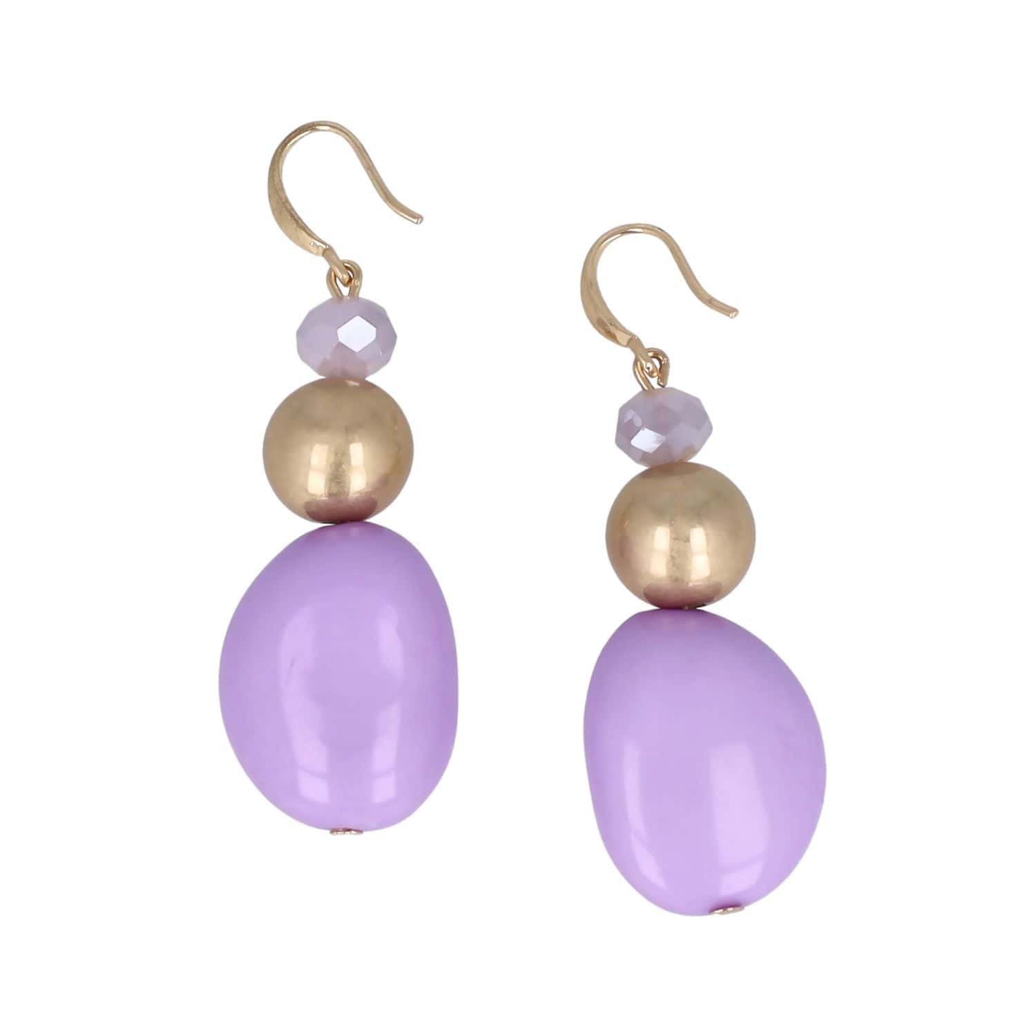 Orecchini da donna a pendente con perno ad amo in ottone anallergico. Composti da pietre in acrilico colorato e dorato. Lung.5,5 cm