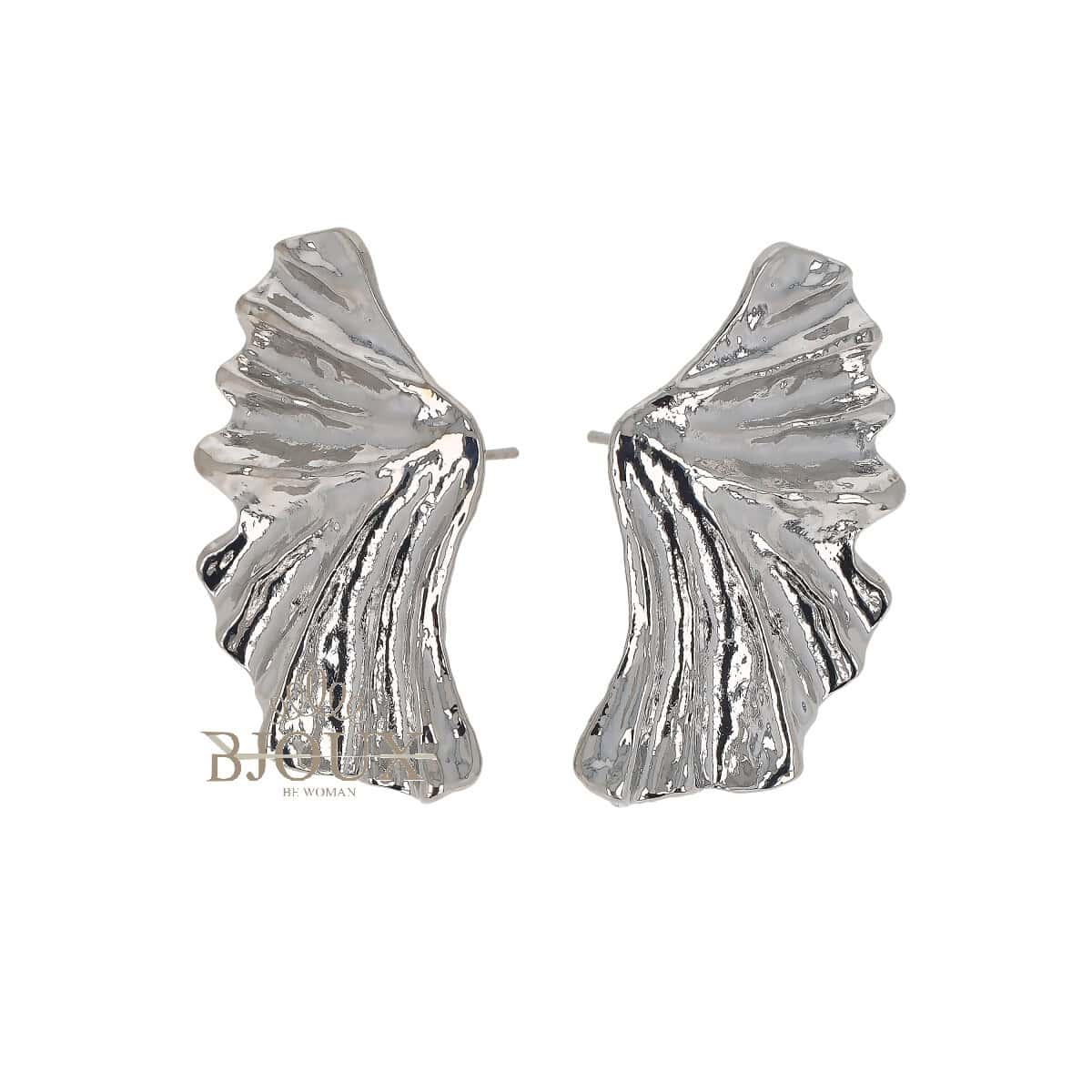 Orecchini bijoux in ottone anallergico dipinto in gold e rodio . Forma alareย con perno a farfallina. Lunghezza 4cm