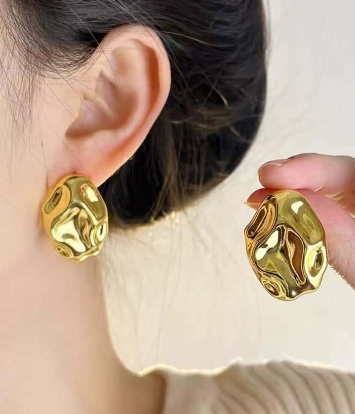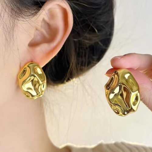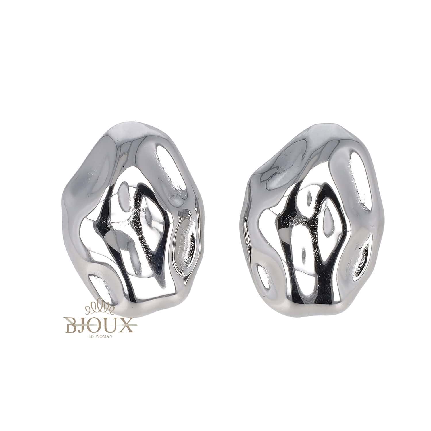 Orecchini di bigiotteria in acciaio inossidabile con perno anallergico, ovali martellati irregolari 3×2 cm . In due colorazioni