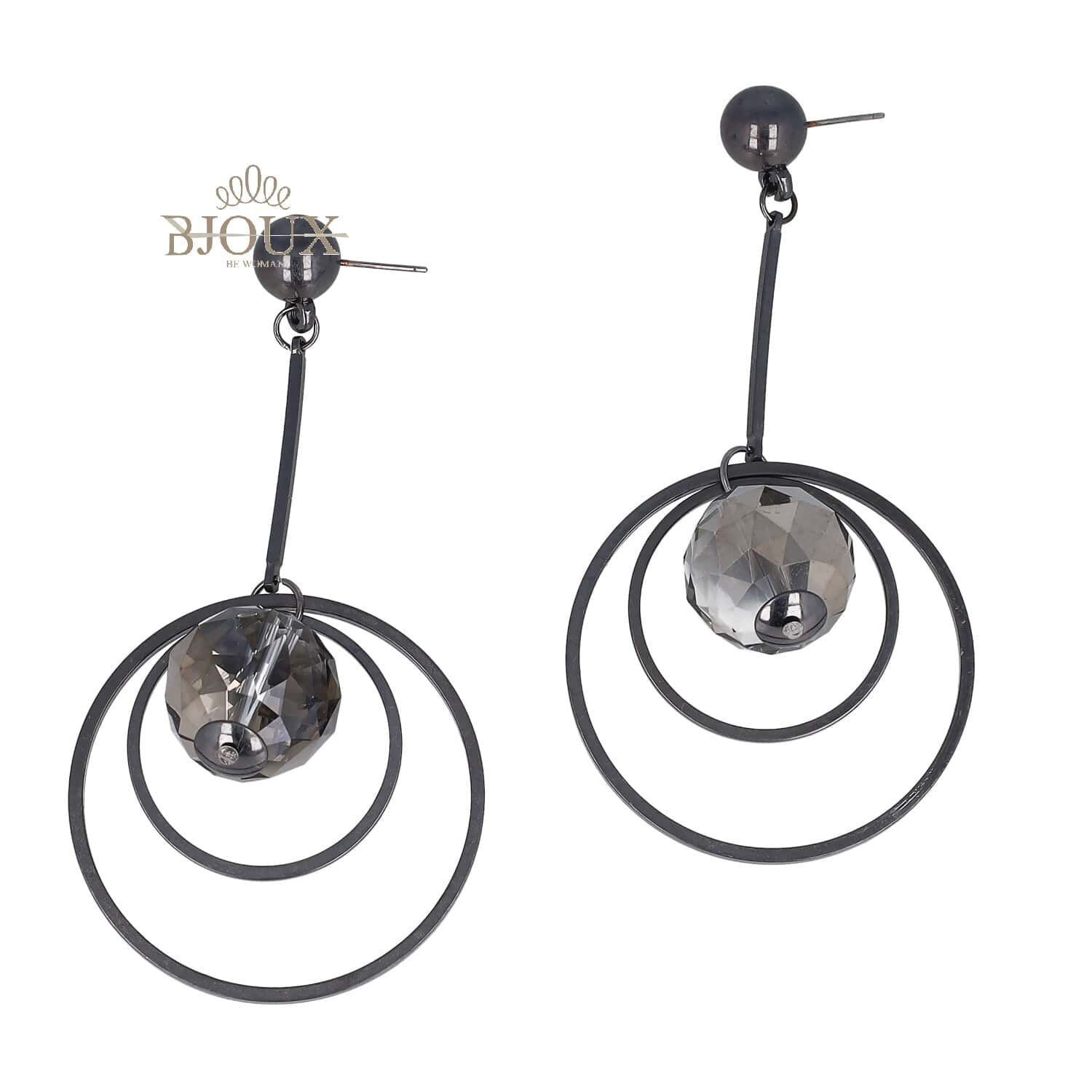 Orecchini di bigiotteria in ottone anallergico. Color canna di fucile , perno con pendente doppio tondo con sfera interna