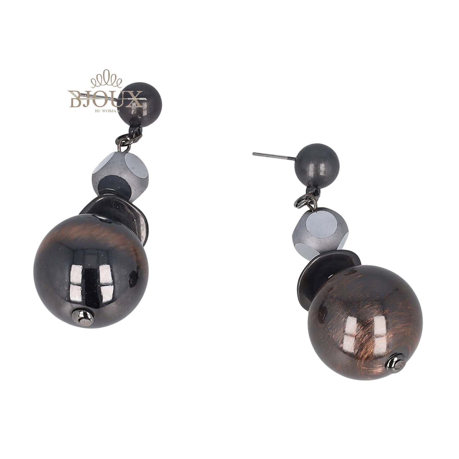 Orecchini di bigiotteria in ottone anallergico. Perno con cubo silver e sfera satinata.