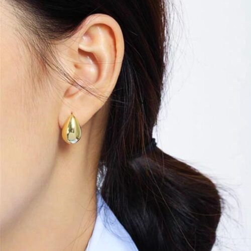 Orecchini da donna in acciaio inox pernoย con goccia schiacciataย da 21 mm. Colore oro o rodio