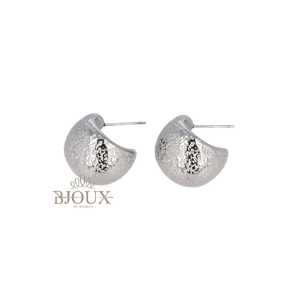 Orecchini in acciaio inossidabile. Orecchini bijoux a perno con mezzaluna bombata puntinata