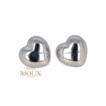 Orecchini in acciaio inossidabile. Orecchini bijoux a perno con cuore lucido bombato.