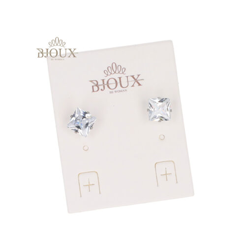 Orecchini in acciaio inossidabile con perno. Castone kry forma quadrata da 6 mm. Colore rodio o oro