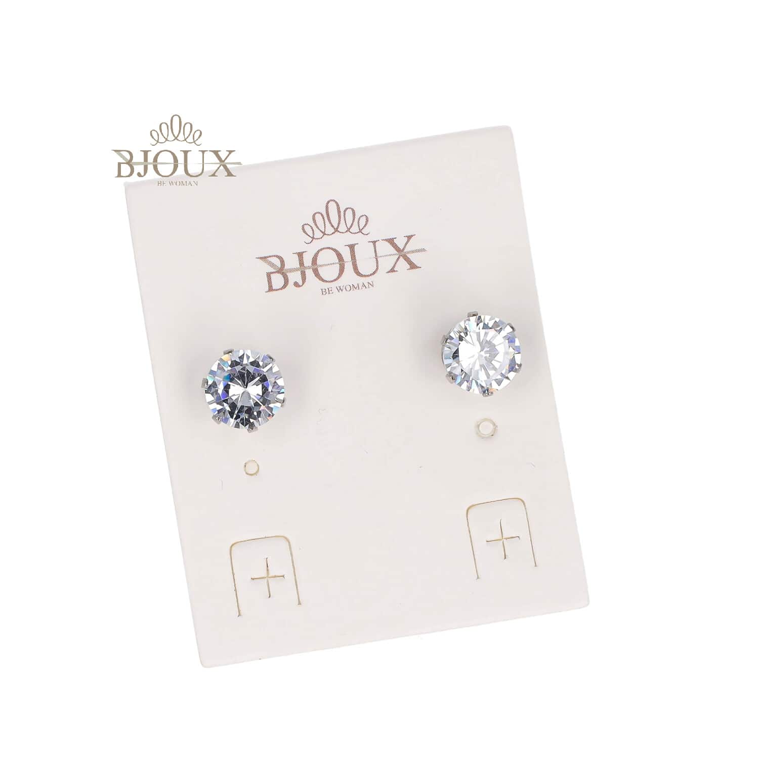 Orecchini in acciaio inossidabile con perno. Castone kry forma tonda da 8 mm. Colore rodio o oro