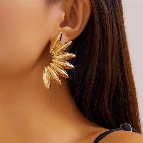 Orecchini di bigiotteria. Orecchini acciaio inossidabile con perno, raggi di sole specchiati.