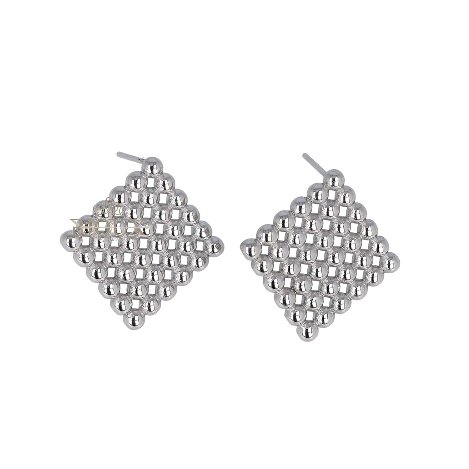 Orecchini in acciaio inossidabile con perno anallergico, rombo forato da 2×2 cm