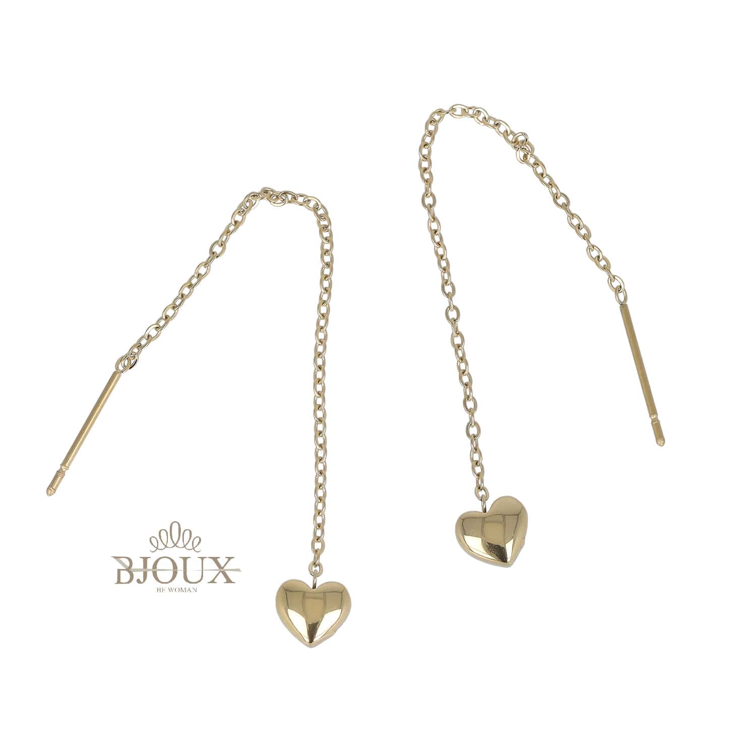 Orecchini di bigiotteria donna in acciaio inossidabile anallergico. Saliscendi con catenina, lung. 7 cm con mini cuore