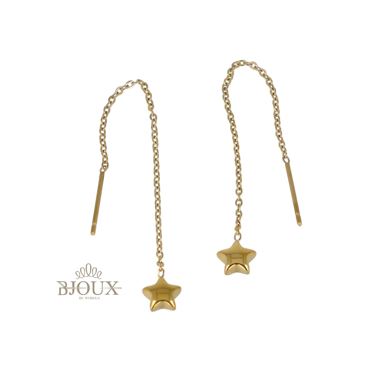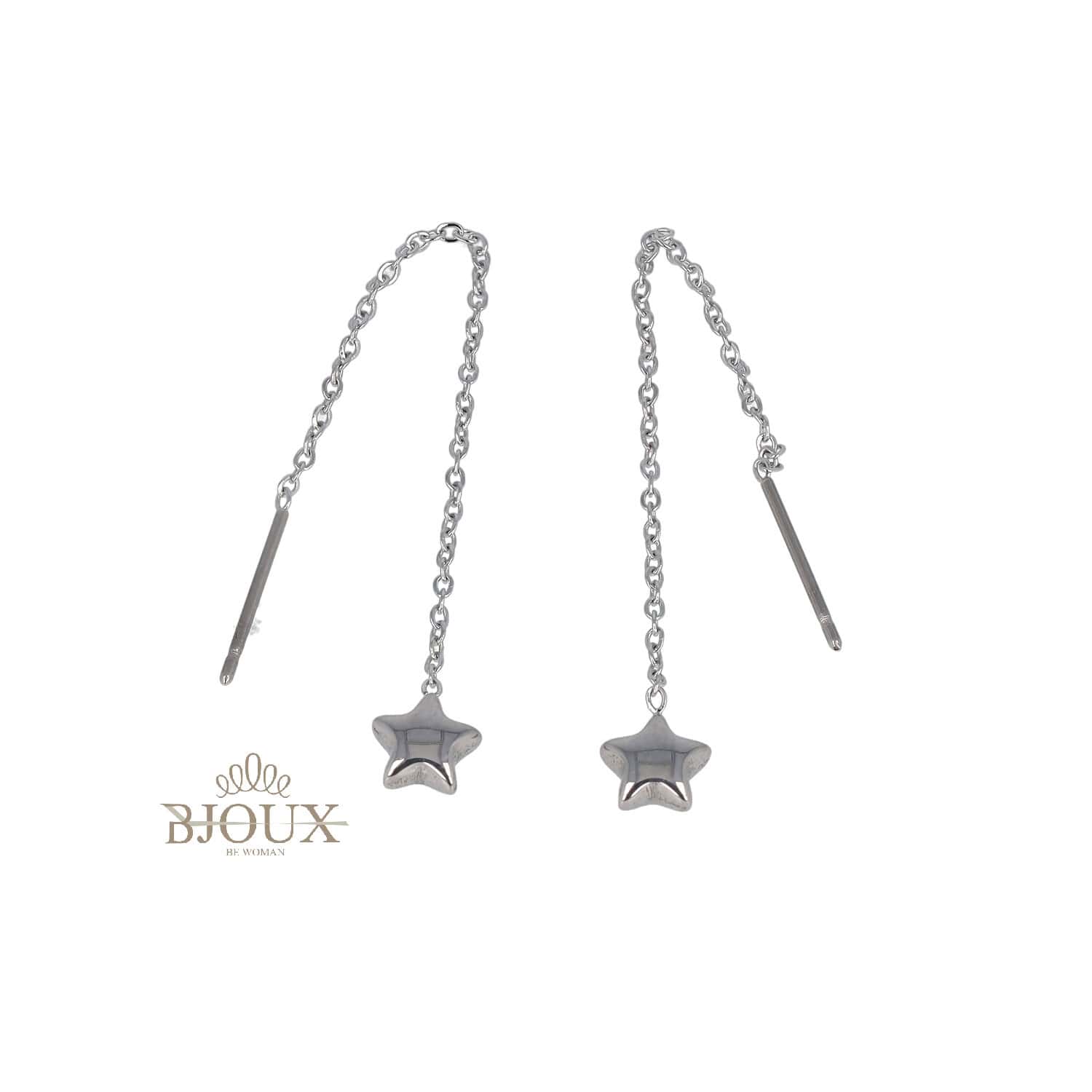 Orecchini di bigiotteria donna in acciaio inossidabile anallergico. Saliscendi con catenina, lung.7 cm con piccola stellina in acciaio