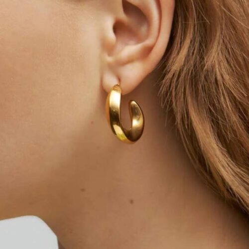 Orecchini di bigiotteria in acciaio inossidabile con perno anallergico, semicerchio asimmetrico curvato lung. 3 cm . In due colorazioni