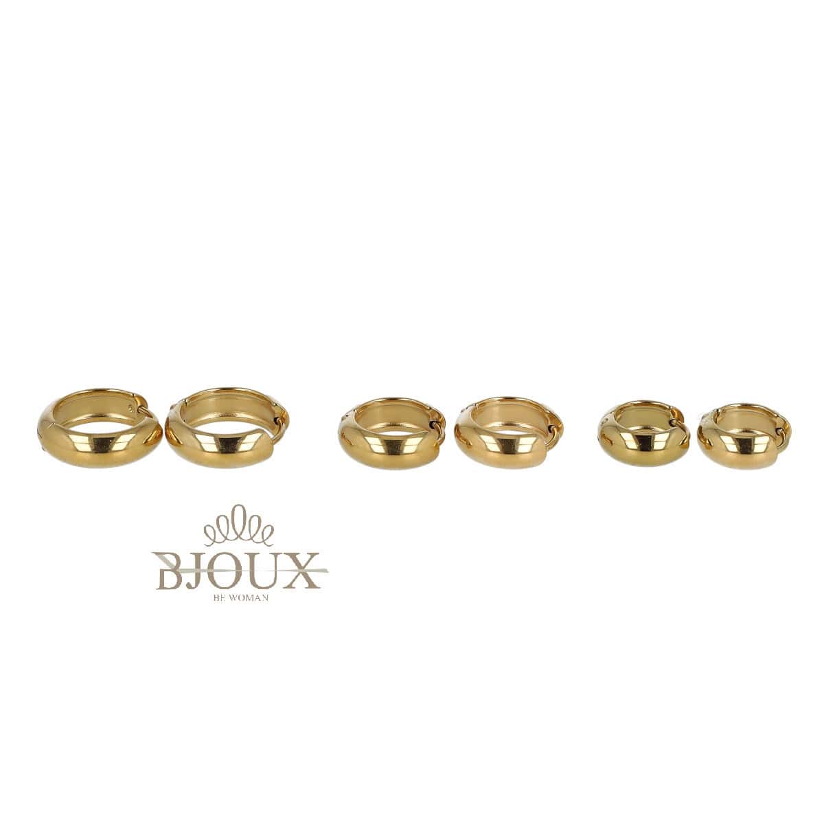 Set di orecchini in acciaio inossidabile. Set da tre coppie di orecchini a cerchietto con chiusura a pressione bombati lisci. Diam- 15/12/10 mm