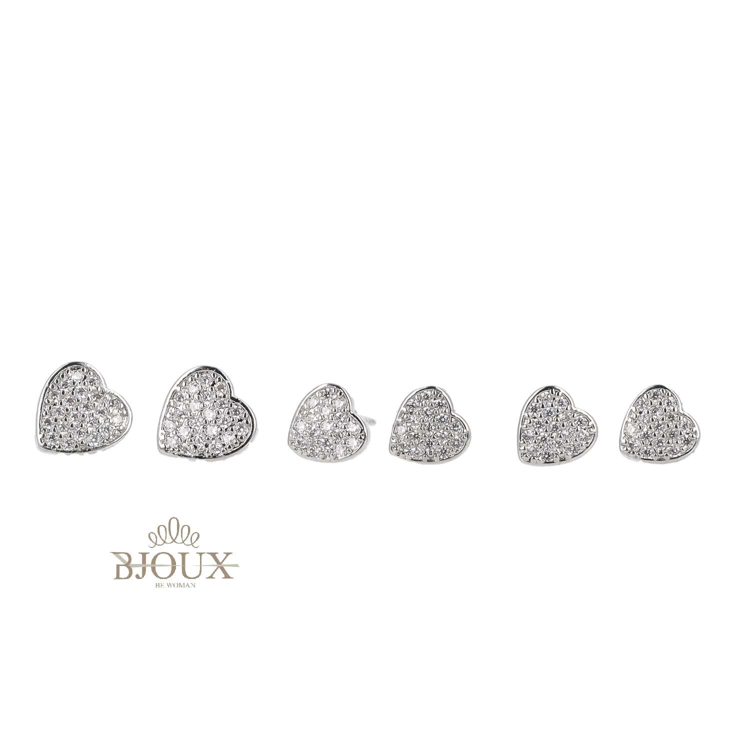 Set di tre paia di orecchini a cuore ricoperti di cristalli. Romantici e brillanti, disponibili in tre dimensioni.