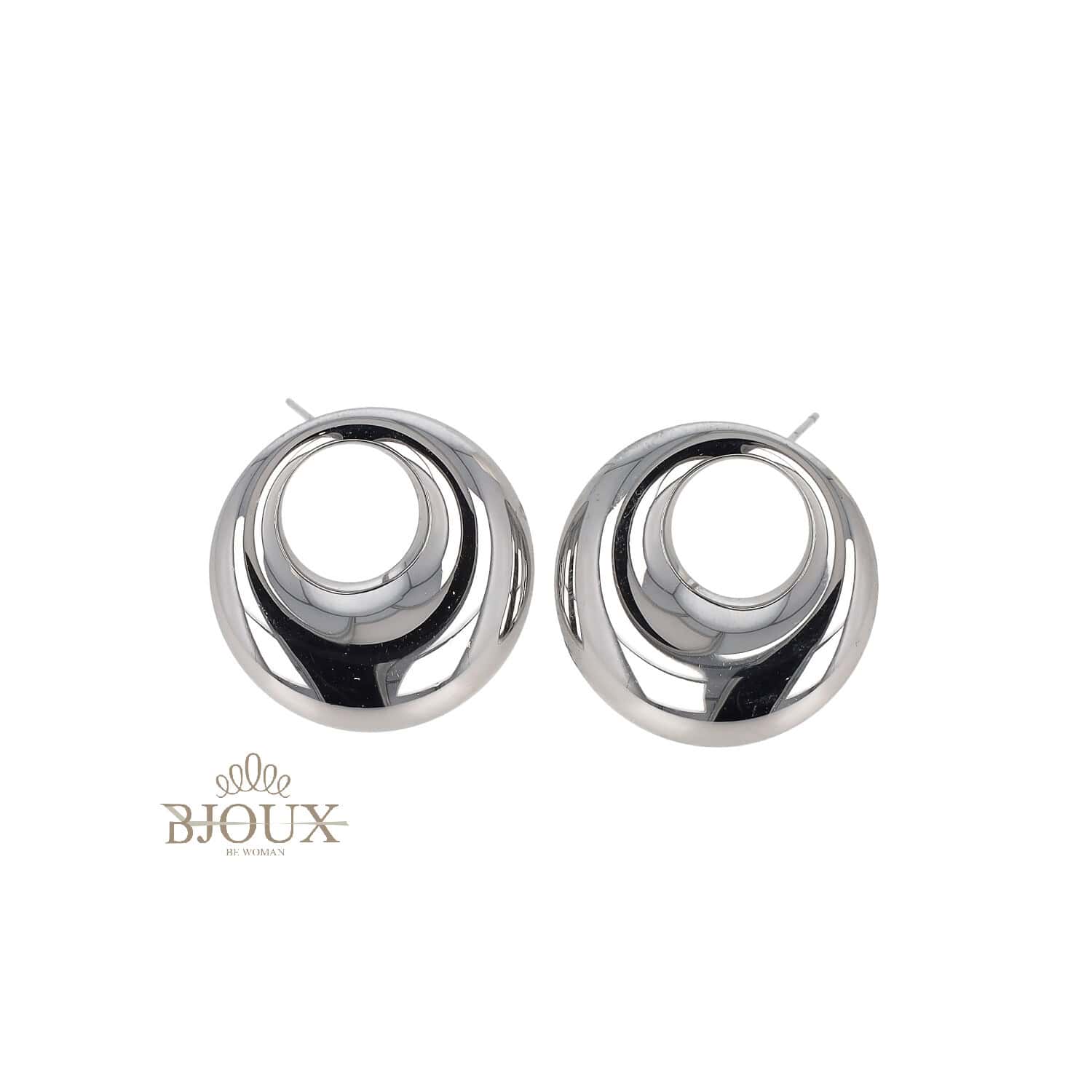 Orecchini rotondi bombati con foro centrale, dal design moderno e originale.Disponibili in oro e rodio.