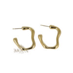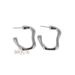 Orecchini in acciaio lucido aย forma fluida e asimmetrica che richiama il movimento delle onde o elementi naturali come rami e radici. La superficie รจ liscia e lucida.