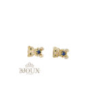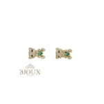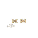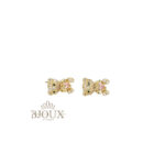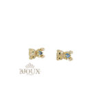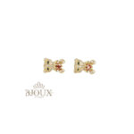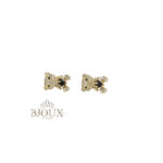 Orecchini in ottone e acciaio inossidabile con perno a lobo anallergico. Forma teddy decorata da strass e pietra centrale. 1 cm